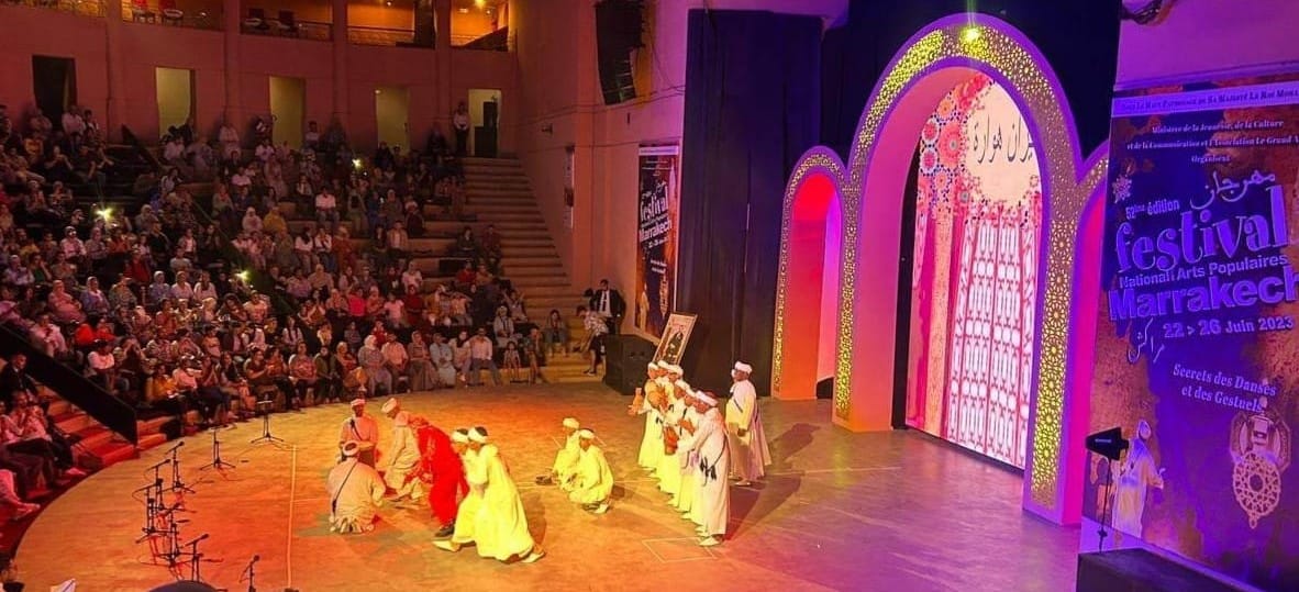افتتحت، مساء أمس الجمعة، رسميا، بالمسرح الملكي بمراكش، فعاليات الدورة الـ 52 للمهرجان الوطني للفنون الشعبية، بأمسية متميزة أتحفت خلالها الفرق المشاركة الجمهور الحاضر بأهازيج ولوحات فلكلورية بديعة.وتميز حفل الافتتاح الرسمي لهذه الدورة، المنظمة تحت الرعاية السامية لصاحب الجلالة الملك محمد السادس، بحضور وزير الثقافة والشباب والتواصل، محمد المهدي بنسعيد، ووالي جهة مراكش – آسفي، عامل عمالة مراكش، كريم قسي لحلو، ونائب رئيس مجلس الجهة، ورؤساء المصالح الخارجية، بالإضافة إلى شخصيات أخرى.و أتحفت 23 فرقة فلكلورية من بينها، على الخصوص، فرقة تيسة، وكناوة، وتسكوين مراكش، وميزان هوارة، والركبة هوارة، وأقلال السيف زاكورة، والتي تعاقبت على المنصة، طيلة ساعتين، الجمهور الذي حج بكثافة إلى المسرح الملكي، بلوحات فنية بديعة، أدتها ببراعة وإتقان على نغمات وإيقاعات شعبية متنوعة، عكست غنى وعراقة التراث الشعبي المغربي. في ذات السياق قال محمد الكنيدري رئيس جمعية الأطلس الكبير، في تصريح مماثل، إن الفرق ال35 المشاركة في فعاليات الدورة 52 للمهرجان الوطني للفنون الشعبية “تقدم صورة جميلة عن المجتمع المغربي بصفة عامة، والمجتمع الفني بشكل خاص، على اعتبار أنها تجسد التنوع في إطار الوحدة”.وأضاف الكنيدري أن الفرق المشاركة تمثل جميع الألوان الفنية الشعبية بالمغرب، والتي تتميز بتنوعها وغناها، كاشفا أن الجمعية ستعمل مع الوزارة الوصية على تنظيم مهرجان للشباب، على هامش المهرجان الوطني للفنون الشعبية، “حتى نتمكن من الحفاظ على هذا الموروث، وليكون هؤلاء الشباب خير خلف لخير سلف”. وتجدر الإشارة إلى أن الدورة 52 للمهرجان الوطني للفنون الشعبية بمراكش، التي تنظمها، إلى غاية 26 يونيو الجاري، جمعية الأطلس الكبير، بشراكة مع وزارة الشباب والثقافة والتواصل، تعرف مشاركة 670 فنانا وفنانة، يمثلون 35 فرقة فلكلورية من مختلف جهات المملكة، بالإضافة إلى مجموعة شعبية إفريقية، وفرقة من ألمانيا (ضيفة شرف الدورة). تصفّح المقالاتبنموسى يتفقد دورة للتكوين لفائدة مربي ومربيات التعليم الأولي بالصويرة على 200 كم من موسكو.. بريغوجين يقرر وقف تحركات مقاتلي “فاغنر” تجنبا لسفك الدماء الروسية