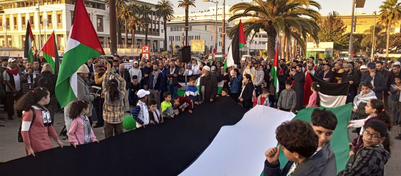 نظمت الجبهة المغربية لدعم فلسطين وضد التطبيع، أمس السبت، وقفات احتجاجية بأزيد من ثلاثين مدينة، تنديدا بالتطبيع، وتجديدا للموقف الشعبي الرافض للاتفاقيات مع الكيان الصهيوني. الوقفات الاحتجاجية، جاءت تزامنا مع الذكرى الثانية لتوقيع اتفاقية التطبيع بين الحكومة المغربية والكيان الصهيوني برعاية أمريكية، حيث جعلت الهيئات المغربية الداعمة للقضية الفلسطينية من هذا التريخ يوما وطنيا لمناهضة التطبيع. وخرج مئات النشطاء والمواطنين عبر المدن المغربية للتأكيد على الرفض الشعبي للتطبيع واستنكار الهرولة التطبيعية من طرف مختلف المؤسسات والقطاعات، مع المطالبة بإسقاط الاتفاقية المشؤومة. ومن جملة المدن التي عرفت تنظيم احتجاجات مناهضة للتطبيع في اليوم الوطني التضامني الاحتجاجي الثامن؛ الرباط والدار البيضاء ووجدة وبركان وآسفي والعرائش وتارودانت والناظور وطنجة والجديدة، ومدن أخرى عديدة. وإلى جانب الأعلام الفلسطينية، رفع المحتجون خلال هذه الوقفات لافتات وشعارات نددت بالتطبيع، وطالبت بإسقاطه وتجريمه، من قبيل “فلسطين أمانة والتطبيع خيانة”، و”التطبيع حريمة وخيانة”، “يا نظام يا صهيون فلسطين في العيون”. وفي كلمات تخللت الوقفات الاحتجاجية، جدد المحتجون التأكيد على دعم المغاربة للشعب الفلسطيني الأبي ضد عدوان الكيان الصهيوني، ودعم مقاومته الباسلة إلى حين تحرير فلسطين وإقرار القدس عاصمة لها. كما أكد المحتجون أن الاستمرار في الهرولة التطبيعية هو دعم من الأنظمة العربية، ومنها المغرب، للكيان الصهيوني الذي يمارس مختلف أشكال القمع والتعذيب والإبادة في حق الشعب الفلسطيني الأعزل، مطالبن بالتوقف والتراجع فورا عن التطبيع بل وتجريمه. تصفّح المقالات “Added Bonus 125% + 250 F جامعة الكرة ومجلس الصحافة يُنددان بتشهير موقع إلكتروني والإساءة للاعب زكرياء بوخلال