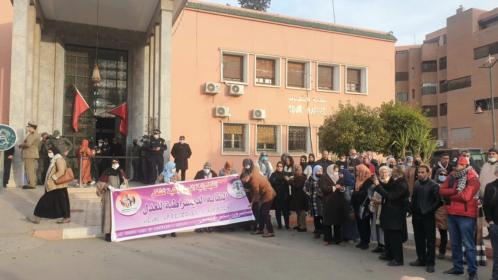 قرر المكتب المحلي للنقابة الديمقراطية للعدل بمراكش، خوض وقفات احتجاجية واعتصام مفتوح ضد ما أسماه “التسيير العشوائي والتنقيط الإنتقامي” لرئيس كتابة الضبط بالمحكمة الإبتدائية.ويأتي تسطير هذا البرنامج الإحتجاجي التصعيدي عقب الإجتماع العاجل والإستثنائي الذي عقده المكتب المحلي للنقابة الديمقراطية للعدل بمراكش يوم الأحد 19 نونبر الجاري، والذي خصص لتدارس آخر المستجدات والتطورات التي تعرفها المحكمة الابتدائية بمراكش، من احتقان و توتر بسبب ما أسمته النقابة بـ”التدبير و التسيير العشوائي والمضايقات و الاستفزازات التي يمارسها رئيس كتابة الضبط في حق الموظفات و الموظفين بذات المحكمة”.و أشار المكتب النقابي في بلاغ له أن ” هاته الممارسات الشاذة ما فتئ المكتب المحلي يُنبه لها الجهات المسؤولة في أكثر من مناسبة عبر بلاغات عدة (بلاغ 30 يوليوز 2022 و بلاغ 23 يناير 2023)، حيث سَلك فيها المكتب المحلي مسلك الصبر و الحِلم تارة وتَغليب فضيلة الحوار تارة أخرى بفعل تدخل بعض الجهات من ذوي النيات الحسنة، غير أنَّ التنقيط الانتقامي و الجائر لهذا (المسؤول) في حق العديد من خيرة أطر و موظفي هذه المحكمة التي تُعتبر استثنائية بجميع المقاييس، في ظل غياب أدنى شروط و ظروف العمل والكم الهائل من الملفات و القضايا المسجلة، لا يمكن التساهل معه أو غض الطرف عنه بأي حال من الأحوال مطلقا مهما كلف الأمر ذلك”.واتهم المكتب المحلي رئيس كتابة الضبط بالمحكمة الابتدائية، بخلق أجواء مشحونة و فوضى عارمة، بسبب أنانيته المفرطة و افتقاره لأسلوب الحوار و إشراك الموظفين في اتخاذ القرارات التي تهم العمل اليومي لمختلف الشعب، و هو نفسه الإطباع لدى جل مكونات العدالة، حيث افتقاره لأدنى أبجديات التواصل و الحوار البناء، في مقابل إجادته للغة الصراخ الذي لا يمكن أن يضاهيه فيها أحد، و هو نفس التذمر و الاستياء و الإحباط الكبير الذي خلفه مؤخرا تنقيطه التعسفي”، الأمر الذي يسائل بحسب البلاغ وزارة العدل حول المعايير التي اعتمدتها و تعتمدها في إسناد مثل هذا (المسؤول) مسؤولية تسيير و تدبير كتابة الضبط بالمحاكم، و الحال أنها تزخر بالكفاءات و الأطر ذات تكوين و خبرة عاليين. وأكد المكتب المحلي أنه “ظل مترفعا عن إتارته مجموعة من الخروقات التي يمارسها رئيس كتابة الضبط بدون حسيب و لا رقيب، حفاظا على أواصر المهنة و حفاظا على السلم المهني و جو العمل الذي يجب أن يسود بعيدا عن أي توتر أو مشاحنات، و هو الوضع الذي ظل يستغله مُتماديا في حماقاته و انحرافاته، حيث اختار القطيعة مع العديد من الموظفات و الموظفين، وخصوصا الذين يُخالفونه الرأي و ممثليهم، كما أن إفراغه لبعض الموظفين من مكاتبهم قَسرا و منحها للمتدربين أو المتطوعين و مؤخرا لمستخدمي (أوراش) جعل الوضع المتأزم و المشحون يزداد تأزما و الأفق مسدودا”.وشدد المكتب المحلي للنقابة الديمقراطية للعدل بمراكش عن رفضه رفضا باتا و مطلقا تجاوزات و ممارسات رئيس كتابة الضبط بالمحكمة الابتدائية، و على رأسها التنقيط الانتقامي و التعسفي، كما يرفض بشكل قاطع إخراج أي موظف من مكتبه و منحه لأي كان و تحت أي مبرر، مطالبا في نفس الوقت وزارة العدل التدخل العاجل لتصحيح ومراجعة التنقيط، محملا رئيس كتابة الضبط المذكور ووزارة العدل مسؤولية ما آلت و ما ستؤول إليه الأوضاع مستقبلا.كما قرر المكتب المحلي للنقابة الديمقراطية للعدل بمراكش في نفس السياق خوض وقفات احتجاجية و اعتصام إنذاريين وفق البرنامج التالي:تنظيم وقفة احتجاجية بالقطب الجنحي الخميس 23 نونبر 2023 على الساعة 10.00 صباحا.تنظيم وقفة إحتجاجية بقصر العدالة يوم الإثنين 27 نونبر 2023 على الساعة 11.00 صباحاتنظيم وقفة إحتجاجية بقصر العدالة الخميس 30 نونبر 2023 على الساعة 11.00 صباحا.خوض اعتصام مفتوح للمكتب المحلي أمام مكتب رئيس كتابة الضبط بالمحكمة الإبتدائية بمراكش يوم الإثنين 04 دجنبر 2023.ودعا كافة الموظفات و الموظفين بمحاكم مراكش و المديرية الفرعية و مركز الحفظ ال