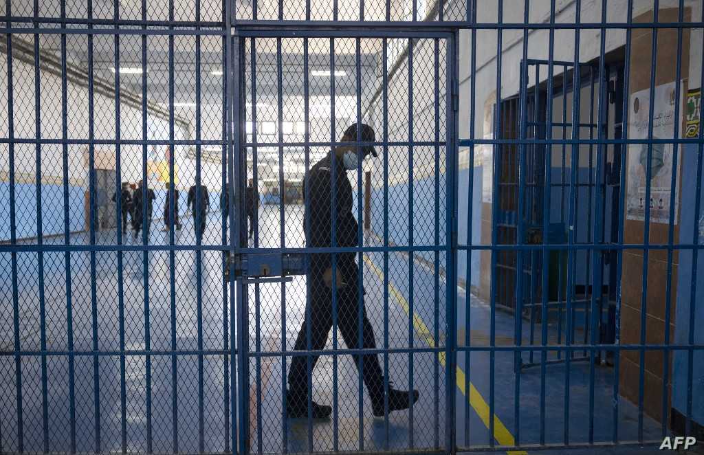 A guard walks behind one of the gates inside the prison of Kenitra, in the coastal city of the same name, near the Moroccan capital Rabat, on August 31, 2021. - After passing through the North African kingdom's Moussalaha ("Reconciliation") programme, some prisoners are hoping for a reprieve. The programme, launched in 2015 and led by Morocco's DGAPR prison service with several partner organisations, aims to help terror detainees who are willing to question their beliefs. (Photo by FADEL SENNA / AFP)