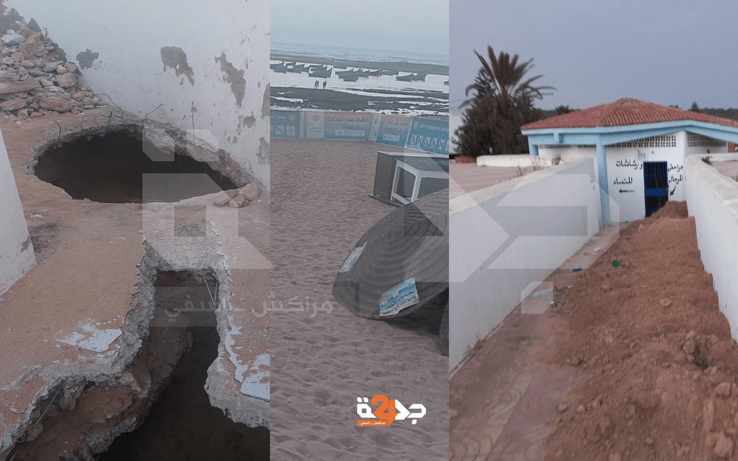 ضرب خراب كبير شاطئ مدينة الصويرية، غير بعيد عن جماعة المعاشات إقليم آسفي، إذ ظهرت حفر كبيرة في جنابات الشاطئ مما تشكل خطرا على المرتفقين بهذا الشاطئ الذي حصل على اللواء الأزرق، غير بعيد عن مصبات المكتب الشريف للفوسفاط المحملة بمواد عضوية مسرطنة على امتداد الساحل.