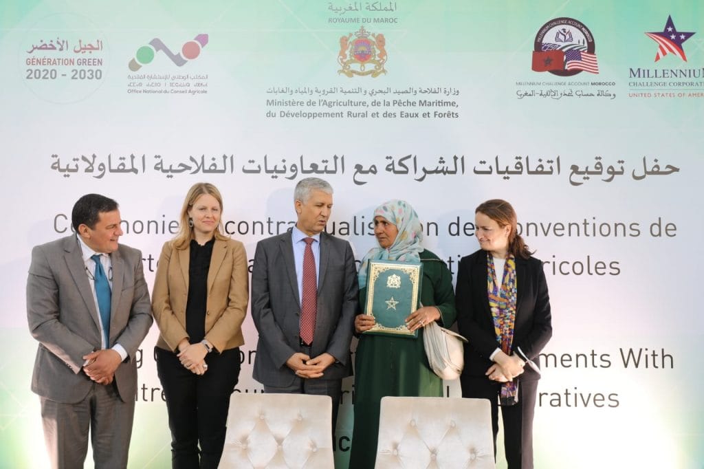 تم اليوم الجمعة بالرباط التوقيع على اتفاقيات دعم 15 مشروعا تم اختيارها في إطار طلب المشاريع المتعلق بدعم المبادرات المقاولاتية الفلاحية، وذلك خلال حفل ترأسه وزير الفلاحة والصيد البحري والتنمية القروية والمياه والغابات، محمد صديقي.ويندرج طلب المشاريع هذا في إطار تنفيذ التدابير المواكبة لعملية التمليك التجريبية للأراضي الجماعية الواقعة داخل دائرتي الري للغرب والحوز، والتي يتم تنزيلها برسم نشاط “العقار القروي” المندرج ضمن برنامج التعاون “الميثاق الثاني”، الموقع بين حكومة المملكة المغربية وحكومة الولايات المتحدة الأمريكية، ممثلة بهيئة تحدي الألفية.ويطمح طلب المشاريع هذا، الذي يتماشى مع أهداف الاستراتيجية الجديدة للتنمية الفلاحية “الجيل الأخضر 2020-2030″، والذي تم إطلاقه تنفيذا لاتفاق الشراكة الموقع في 07 نونبر 2019 بين وكالة حساب تحدي الألفية-المغرب والمكتب الوطني للاستشارة الفلاحية، إلى تشجيع اعتماد مقاربة مبتكرة ودامجة في مجال دعم المبادرات المقاولاتية الفلاحية قصد التمكين الاقتصادي للنساء والشباب الذين يعتمدون في عيشهم على الأرض و/أو لهم صلة بها.ويستهدف طلب المشاريع هذا الجمعيات والتعاونيات الفلاحية، مع إعطاء الأولوية للمنظمات النسائية أو التي تضم من بين أعضائها الشباب الذين تتراوح أعمارهم بين 15 و45 سنة.وأكد صديقي، في كلمة بالمناسبة، أن تمليك الأراضي الجماعية يشكل رافعة للاستجابة للعديد من الاكراهات التي يواجهها القطاع الفلاحي فيما يتعلق بتثمين العقار. وأضاف أن تمليك الأراضي الجماعية يندرج في جعل أراضي الجماعات السلالية رافعة للتنمية الاقتصادية والاجتماعية بالعالم القروي بشكل عام، وإلى تفعيل عملية تمليك الأراضي الجماعية الواقعة داخل دوائر الري، بشكل مجاني، لفائدة ذوي الحقوق، بشكل خاص.من جهته ، أشار المدير العام للمكتب الوطني للاستشارة الفلاحية ، جواد باحجي، إلى أن هذه المشاريع الخمسة عشر كانت ثمرة عملية اختيار دقيقة على مستوى أربع أقاليم، مضيفا أنه ووعيا منه بأهمية هذه المشاريع سيعمل المكتب الوطني للاستشارة الفلاحية بشكل وثيق على المواكبة في مرحلة قبلية وبعدية قصد تعزيز قدرات حاملي المشاريع والمساهمة في إنجاح هذه الشراكة.من جهتها، أشارت المديرة المقيمة لهيئة تحدي الألفية الأمريكية بالمغرب، كيري مونهان، في تصريح للصحافة، إلى أن الأمر يتعلق بخطوة هامة للغاية في إطار التعاون مع الحكومة المغربية.وقالت إن ساكنة المناطق القروية، الذين يتوفرون على امكانات ومهارات، يمكن أن يشكلوا رافعة للاقتصاد المغربي.بدورها، أبرزت المديرة العامة لوكالة حساب تحدي الألفية-المغرب، مليكة العسري، أن من شأن هذه المشاريع دعم الشباب والنساء الذين يعيشون في هذه الأراضي والذين ، من خلال هذه المشاريع ، سيتمكنون من تعزيز معارفهم.وقالت العسري إن من شأن أيضا هذه المشاريع إحداث 27.000 يوم عمل سنويا وتحسين مردودية ودخل الفلاحين المعنيين.وتغطي هذه المشاريع، التي تبلغ ميزانيتها الإجمالية 20,5 مليون درهم والمدعومة في حدود 76 في المئة بفضل مساهمة برنامج التعاون “الميثاق الثاني” (15,6 مليون درهم)، أقاليم القنيطرة (4 مشاريع)، وسيدي سليمان وسيدي قاسم (3 مشاريع لكل منهما)، وقلعة السراغنة (5 مشاريع).وتشمل هذه المشاريع، مجالات مختلفة، من قبيل الخدمات، وزراعة الزيتون، وتثمين الحليب، والفلاحة البيئة، والفلاحة السياحية، وتربية الحلزون، وزراعة أشجار الأفوكا والخضروات، وتسويق البقوليات والنباتات الطبية والعطرية..وقد تم اختيار المشاريع الخمسة عشر التي تشرف عليها تعاونيات، بعد استكمال مسار دقيق للتقييم والمواكبة القبلية. وستستفيد التعاونيات المعنية من الدعم التقني والمالي بهدف تحسين أنظمتها الإنتاجية، وتطوير وتعزيز أنشطتها الاقتصادية ذات الصلة بالقطاع الفلاح تصفّح المقالاتاحتلال المقاهي للملك العمومي في آسفي على مكتب وزير الداخلية بنجرير..النيابة العامة تُودع خمسة عمّال 