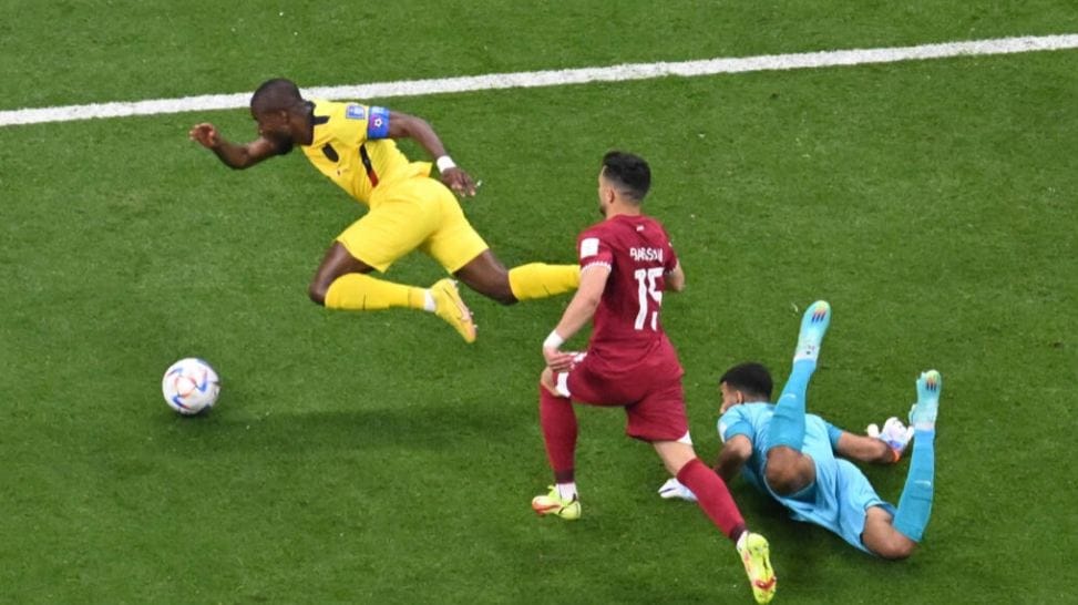 سقط منتخب قطر في أوّل مشاركة له في نهائيات كأس العالم أمام نظيره الاكوادوري صفر-2 الاحد على استاد البيت في المباراة الافتتاحية لمونديال قطر 2022. وسجل اينير فالنسيا الهدفين في الدقيقتين 16 من ركلة جزاء و31 أمام 67372 متفرجاً. وتضم المجموعة الاولى ايضا منتخبي هولندا والسنغال اللذين يلتقيان الاثنين. وباتت قطر اول دولة مضيفة تخسر مباراتها الاولى في تاريخ نهائيات كأس العالم، لتخطو خطوة ناقصة في بداية مشوارها المونديالي. وكانت هذه المباراة الثالثة في الترتيب في اليوم الاول من هذه البطولة لكن الاتحاد الدولي لكرة القدم قرر تقديم بدء البطولة بيوم واحد في الماضي لكي تخوض الدولة المضيفة المباراة الافتتاحية كما جرت العادة.مشغل الفيديوhttps://lakome2.com/content/uploads/2022/11/VID-20221120-WA0033.mp4?_=1 واستغل المنتخب الاكوادري سوء تفاهم بين حارس قطر سعد الشيب واحد مدافعيه ليسجل مهاجم فنربهتشه التركي اينير فالنسيا هدفا برأسه من مسافة قريبة بعد مرور ثلاث دقائق فقط، لكن الحكم الغاه بعد الرجوع الى تقنية حكم الفيديو المساعد (في ايه آر) بداعي التسلل. واحتسب الحكم ركلة جزاء جزاء اثر عرقلة حارس مرمى قطر الشيب لفالنسيا داخل المنطقة فانبرى لها الاخير بنجاح (16). وهي المرة الاولى في تاريخ نهائيات كأس العالم التي يتم فيها تسجيل الهدف الافتتاحي من ركلة جزاء. وتابع المنتخب الاكوادوري افضليته مستحوذا على الكرة بنسبة 62 في المئة وسط ضياع كامل لاصحاب الارض. ونجحت الاكوادور التي تشارك في النهائيات للمرة الرابعة في تاريخها، في تعزيز تقدمها بفضل فالنسيا ايضا الذي استثمر كرة عرضية من انخيلو بريسيادو من الجهة اليمنى ليسدد كرة رأسية داخل الشباك (32). وعزز فالنسيا بالتالي رصيده كأفضل مسجل في تاريخ منتخب بلاده مع 37 هدفا، كما انفرد بالرقم القياسي في عدد الاهداف للاكوادور في النهائيات مع خمسة اهداف بعد ان كان متساويا مع اوغستين دلغادو. وللمفارقة، نجح فالنسيا في تسجيل اخر خمسة اهداف تواليا لمنتخب بلادها في العرس الكروي ايضا. كما ان فالنسيا بات سادس لاعب يسجل ثنائية في المباراة الافتتاحية خلال هذا القرن بعد الالماني ميروسلاف كلوزه (2006) في مرمى كوستاريكا، والكوستاريكي باولو وانتشوب في المباراة ذاتها، والبرازيلي نيمار في مرمى كرواتيا في نسخة 2014، والروسي دينيس شيريشيف في مرمى السعودية في مونديال روسيا 2018. دخل لاعبو المنتخب القطري اكثر هدوءا في الشوط الثاني وتبادلوا الكرة بروية. وبعد ان احبط الشيب محاولة روماريو ايبارا من مشارف المنطقة (53)، سدد الظهير القطري بدرو ميغيل كرة رأسية مرت الى جانب القائم الايمن اثر هجمة منسقة (62). وتعرض المنتخب الاكوادوري لضربة قوية باصابة فالنسيا في الدقيقة 77. وحاول محمد مونتاري الذي حل بدلا من المعز علي من خلال كرة ساقطة لكنها حطت على الشباك من فوق (85). واللقاء هو الرابع بين المنتخبين وقد فازت الاكوادور مرتين مقابل مرة واحدة لقطر وتعادلا مرة واحدة ايضا. تصفّح المقالات منتخب المغرب يواصل الاستعدادات لمباراة كرواتيا رغم جهود وقف القرصنة.. مشجعون مغاربة يشاهدون المونديال على “بدائل مجانية”
