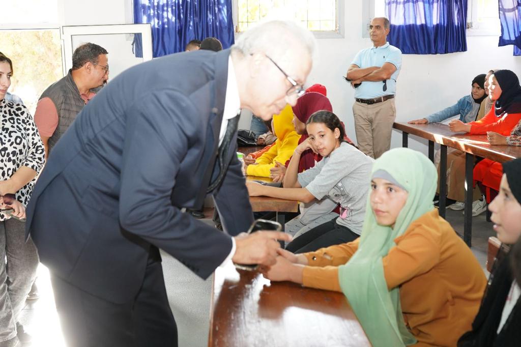 و وقف الوالي على ظروف استقبال التلاميذ الذين تم تحويلهم من المناطق المتضررة من الهزة الأرضية بإقليم الحوز لاستئناف دراستهم بعدد من المؤسسات التعليمية بمراكش.