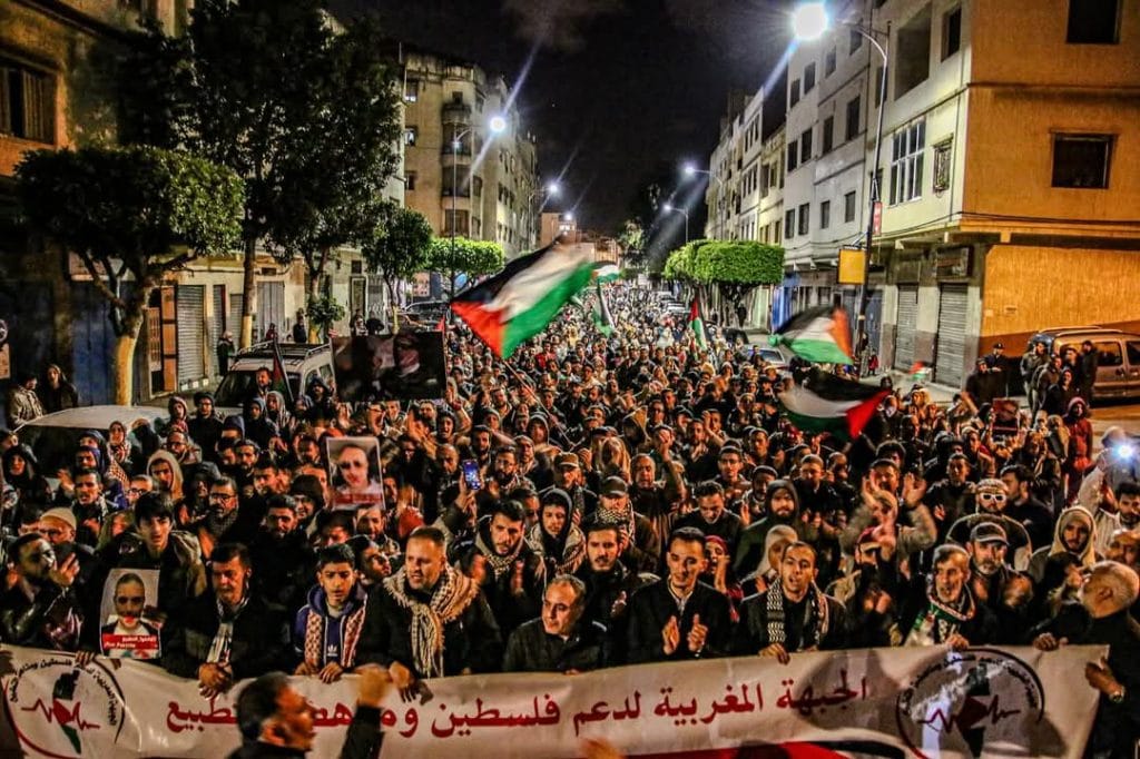 استجابة لنداء الجبهة المغربية لدعم فلسطين ومناهضة التطبيع، خرج آلاف المغاربة في وقفات ومسيرات ليلية حاشدة، بعدة مدن على امتداد الخريطة، جددوا خلالها التنديد بالمجازر الصهيونية في غزة وعموم فلسطين، وطالبوا بإسقاط التطبيع الرسمي مع الكيان الصهيوني الملطخة يداه بدم النساء والأطفال. وحمل المشاركون في الأشكال الاحتحاجية التي تأتي في اليوم الوطني الاحتحاجي والتضامني الـ21، الأعلام الفلسطينية وصور رموز المقاومة، إلى جانب أكفان رمزية لأطفال صغار وصور تظهر جانبا من همجية الكيان في حربه على غزة. وصدحت حناجر المحتجين بشعارات من قبيل “الشعب يريد إسقاط التطبيع” و”الوفاء الوفاء.. لدماء الشهداء”, و”افتحوا المعابر.. أوقفو المجازر”، و”مغربي وأرضي حرة.. والصهيوني يطلع برا”، وفلسطين أمانة والتطبيع خيانة”، وغيرها من الشعارات التي أطلقتها حناجر المحتجين في سماء مدن من قبيل الدار البيضاء وطنجة وأزرو والجديدة وتارودانت وآسفي ومراكش. وفي مدينة الدار البيضاء، انطلقت المسيرة الحاشدة من ساحة مارشال في اتجاه القنصلية الأمريكية تعبيرا من المحتجين عن استنكارهم للدعم الأمريكي للكيان الصهيوني في جرائمه ودعمه بالسلاح والعتاد، وهي المسيرة التي شهدت حضورا وازنا للنساء ولمختلف الفئات. ولم يختلف الأمر في مسيرات أخرى، كطنجة ومراكش حيث جدد المواطنون بالآلاف موقفهم الداعم للقضية الفلسطينية ونصرتهم للمقاومة، ورفضهم المطلق للعلاقات مع الكيان، وهو نفس الموقف الذي عبرت عنه الوقفات الاحتجاجية في مدن أخرى. ولم تسلم الأشكال الاحتجاجية لليوم الوطني التضامني الـ21 من التدخل الأمني، حيث عرفت مدينة الجديدة تدخلا أمنيا للحيلولة دون تحرك المشاركين في وقفة احتجاجية وتحويلها إلى مسيرة، وهو ما نا خلف استنكارا من طرف المشاركين، وعبروا عن رفضهم للقمع وانتهاك حقهم. وإلى جانب مشاركة عدة هيئات سياسية ونقابية وحقوقية، ومنتسبيها، عرفت الاحتجاجات، أيضا حضورا لتنسيقية أطباء مغاربة من أجل فلسطين التي واصلت تنديدها باستهداف الأطر الصحية والمستشفيات، وجددت إدانتها للمجازر في القطاع المحاصر. وعبرت الأشكال الاحتجاجية عن إدانتها للحصار والتجويع الذي يتعرض له سكان غزة، وجرائم الصهيونية في الضفة، والانتهاكات المتواصلة في القدس والمسجد الأقصى، وطالب المحتجون بوقف الإبادة وفتح المعابر، ومحاسبة الكيان الصهيوني ومجرميه على ما تقترفه أيديهم من جرائم مروعة، مستنكرين الصمت والتخاذل والتواطؤ العربي والإسلامي والعالمي، إزاء ما يحدث. كما شكل مطلب إسقاط التطبيع محور الأشكال الاحتحاجية، حيث جدد المغاربة التعبير عن موقفهم المبدئي والراسخ الرافض لاتفاقيات مع الكيان، وطالبوا بغلق مكتب الاتصال بالرباط وطرد من فيه. تصفّح المقالات اليوم العالمي لداء السل في المغرب.. 50% من الحالات رئوية و85% نسبة الكشف المبكر تعيينات ملكية في ثلاث مؤسسات دستورية.. إزاحة الراشدي بعد اصطدامه بحكومة أخنوش وحسن طارق في منصب وسيط المملكة